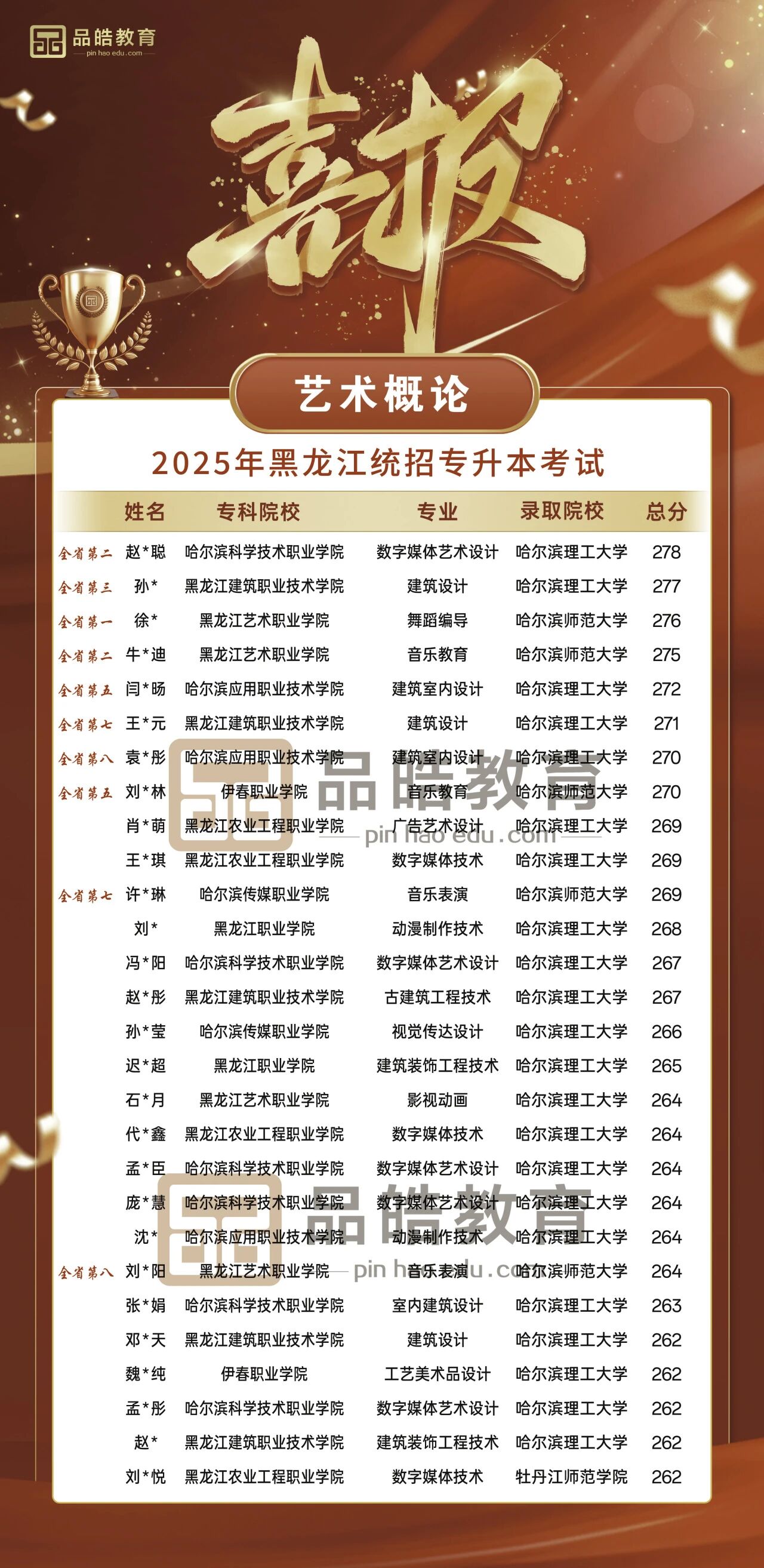 教育类:260分以上全省共计221人,品皓学员占68人;哈师大共计49个名额,品皓学员占19人。