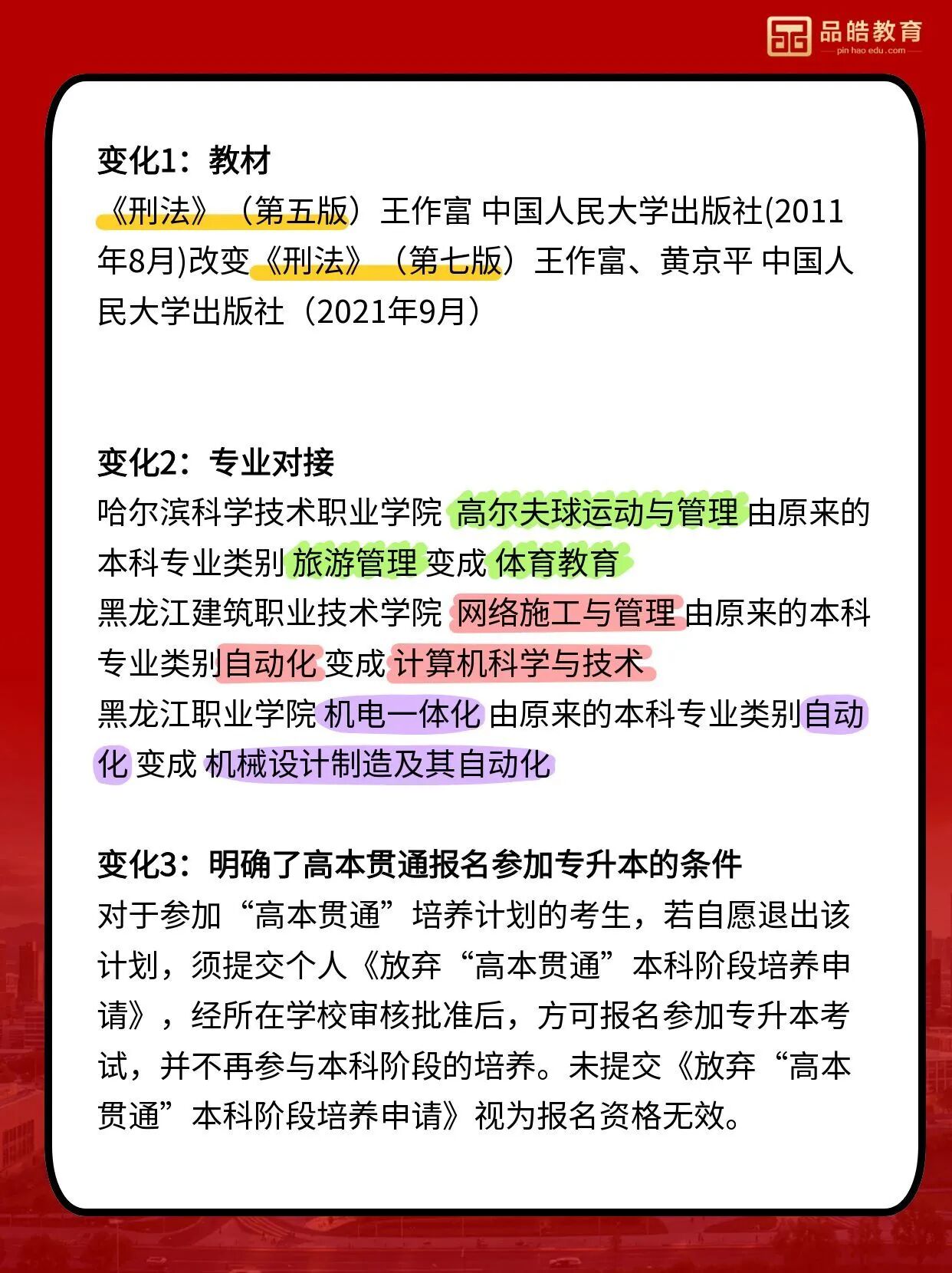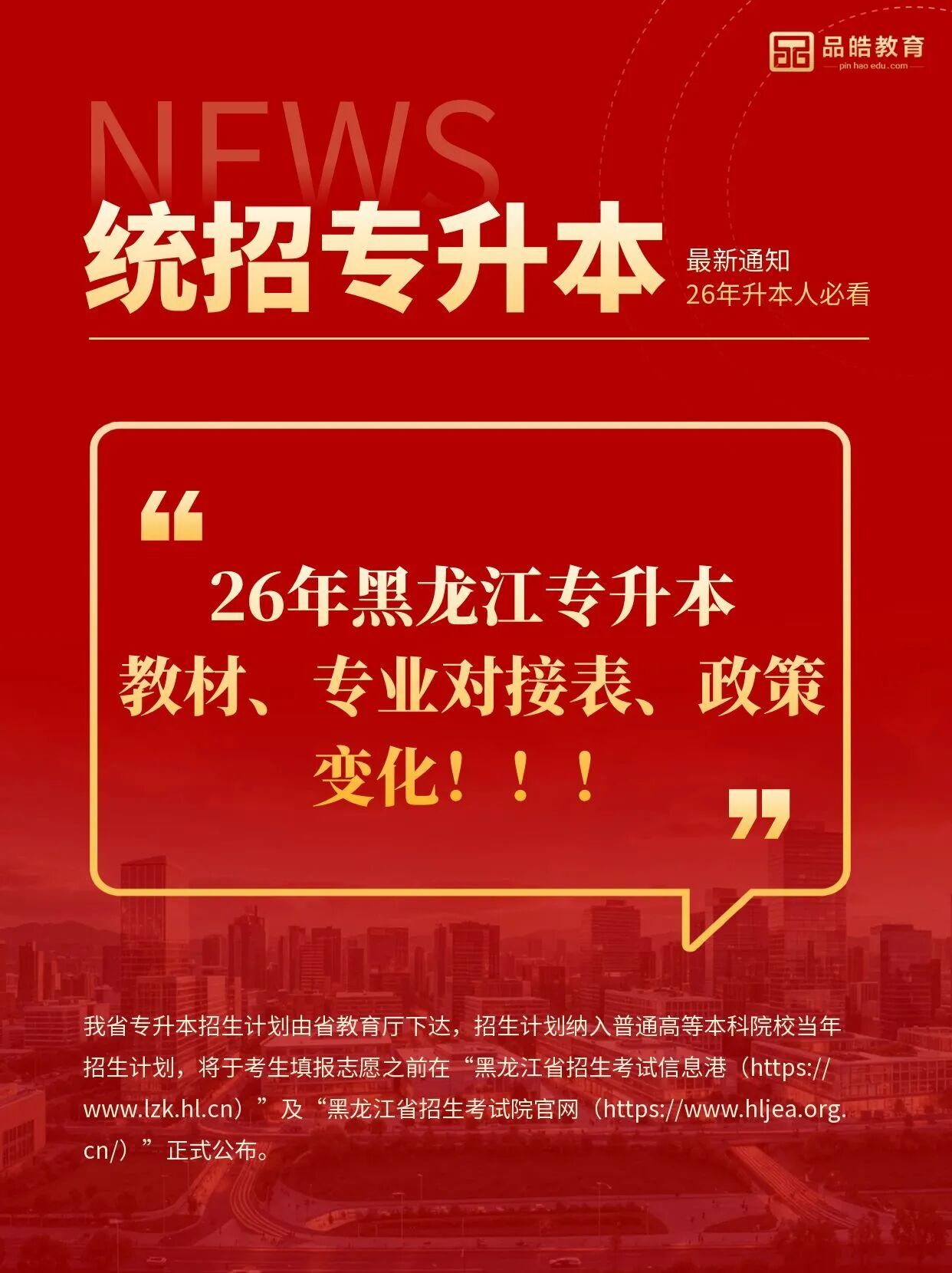 26年黑龙江专升本教材/专业对接表/政策变化!