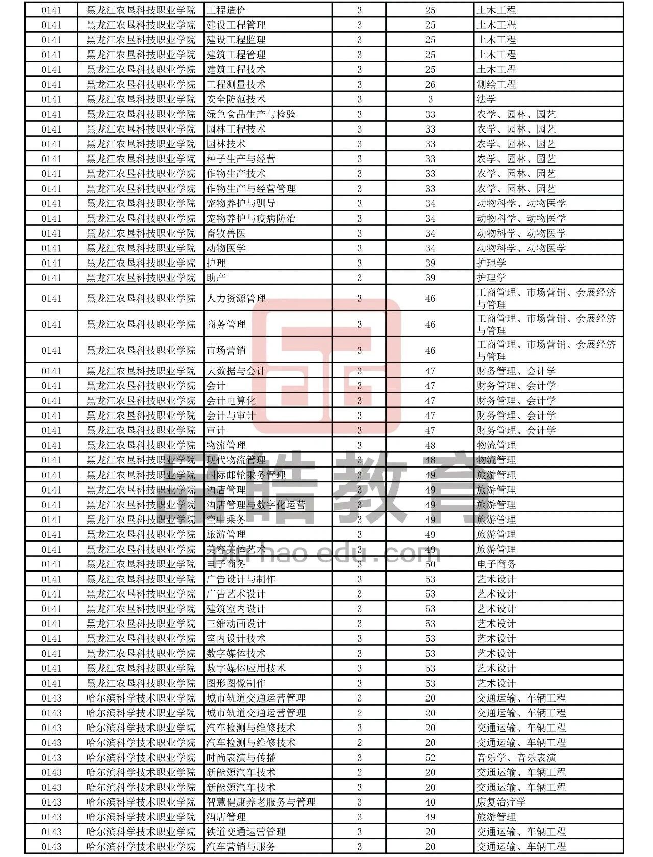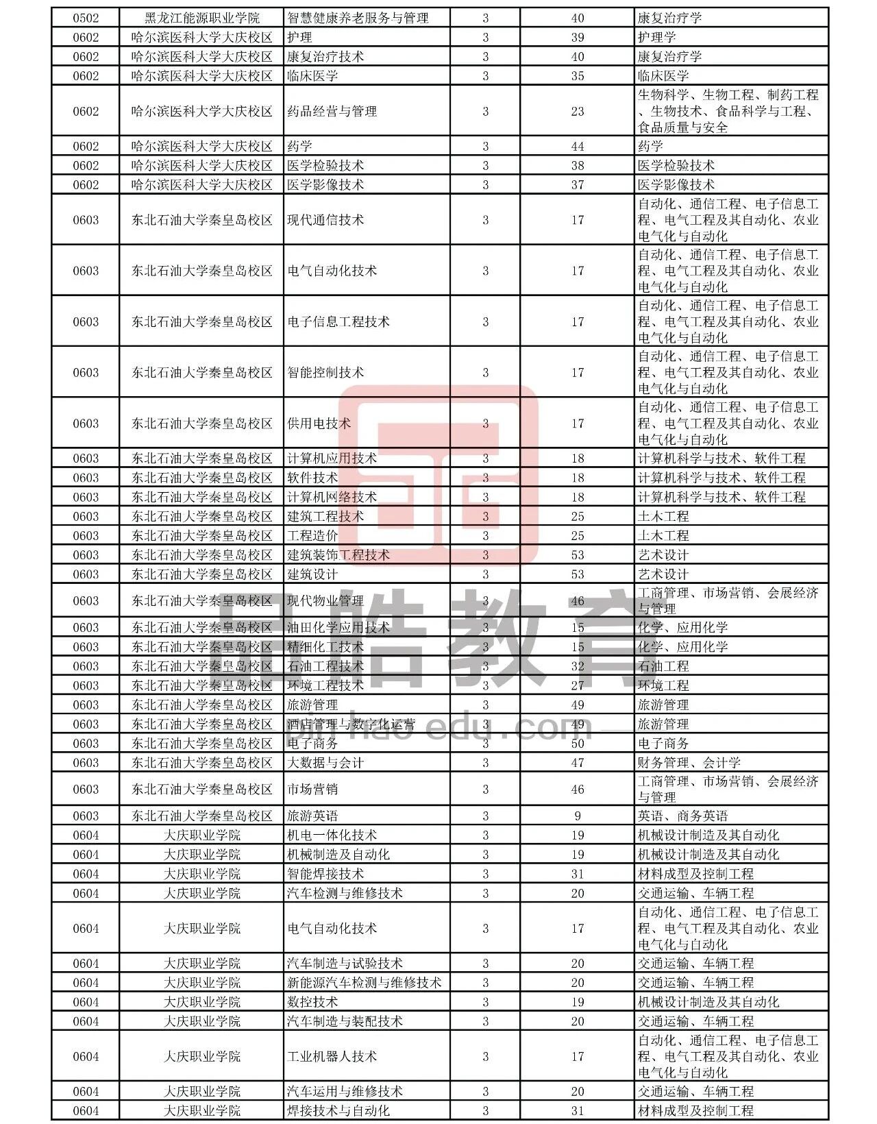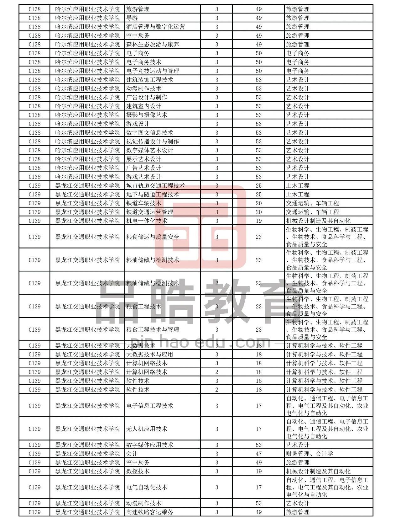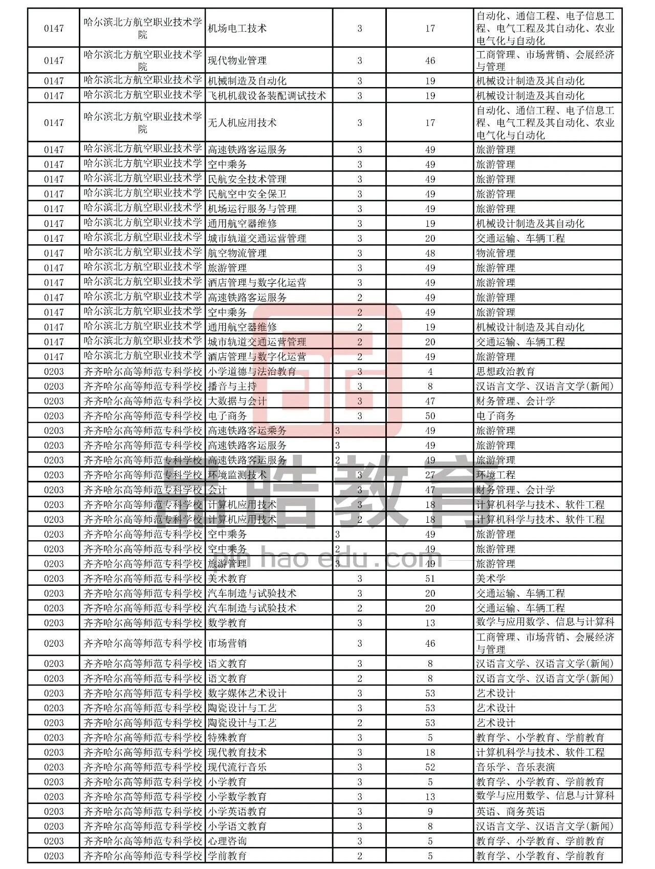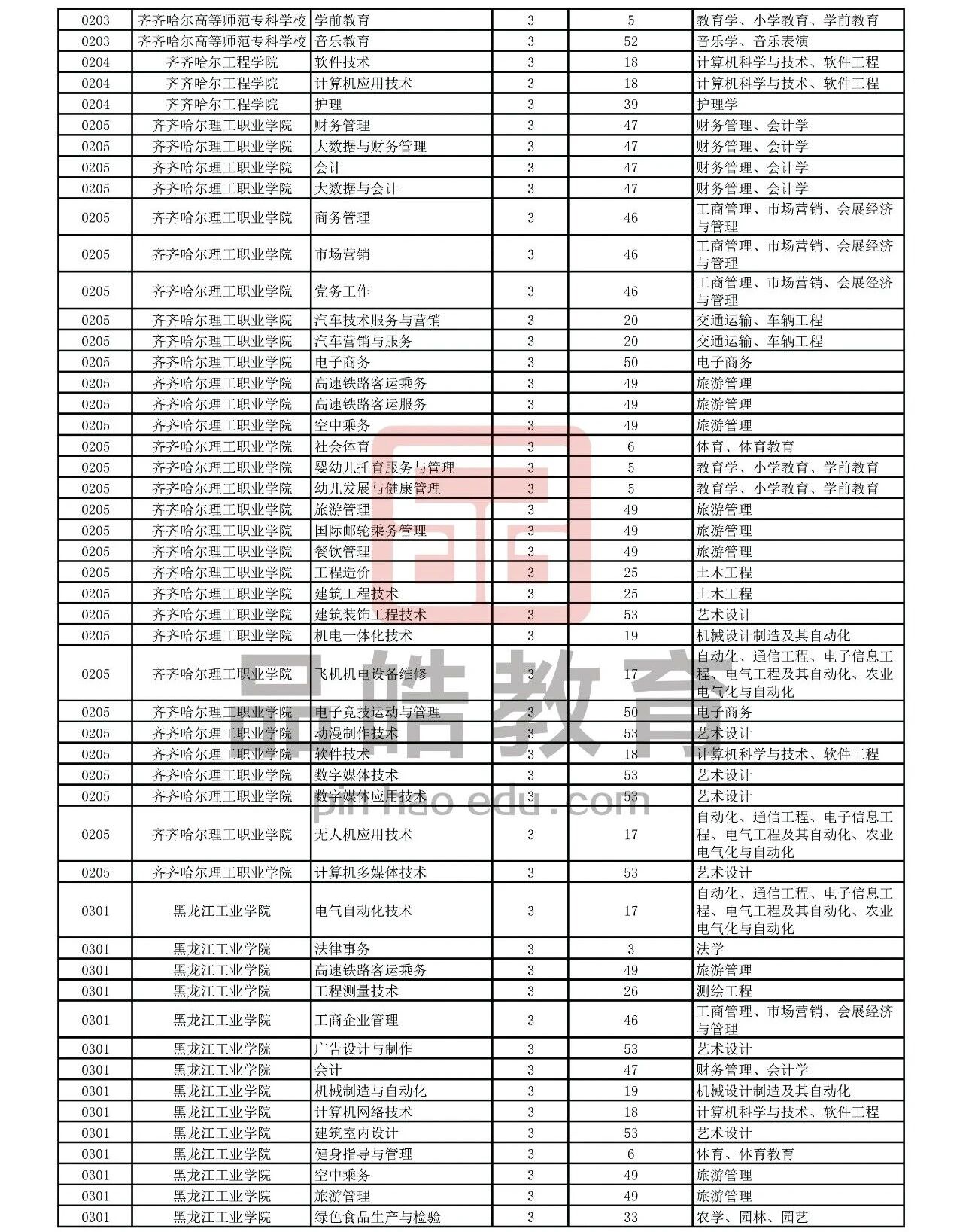 2026年黑龙江省普通高校专升本考试专业对接表