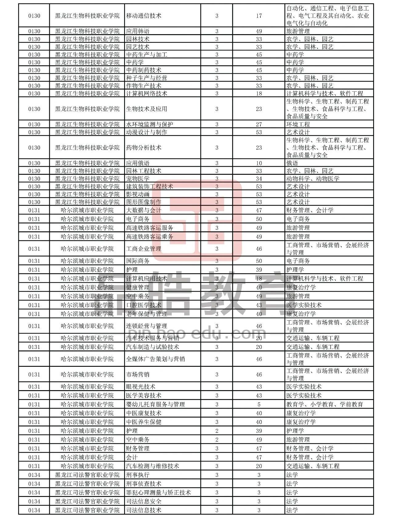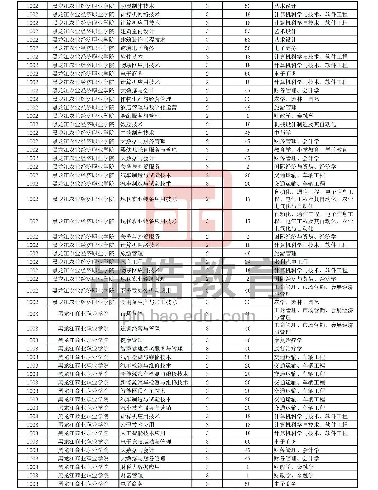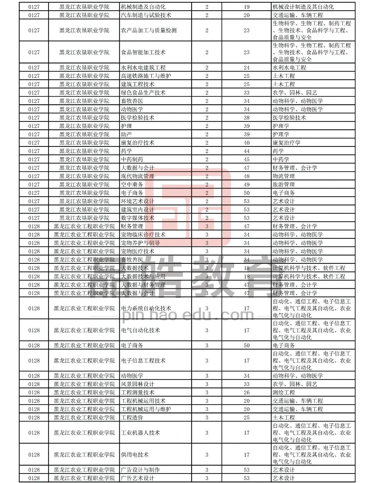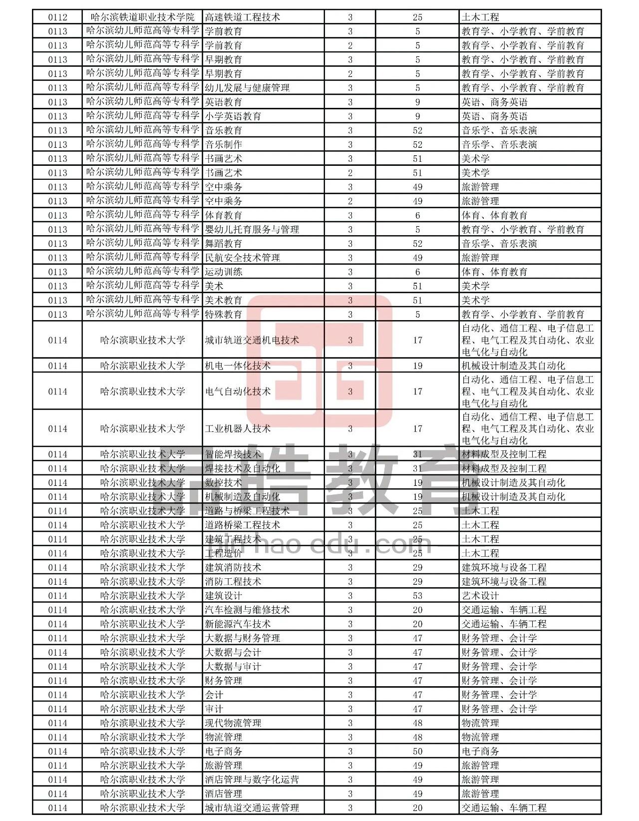 2026年黑龙江省普通高校专升本考试专业对接表