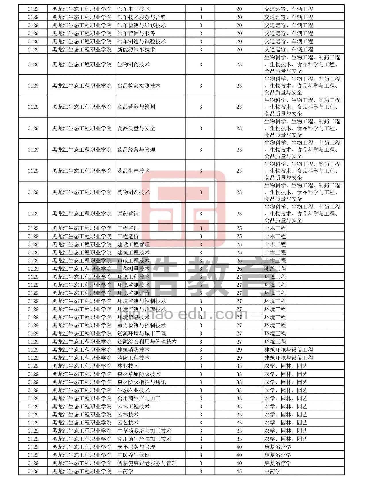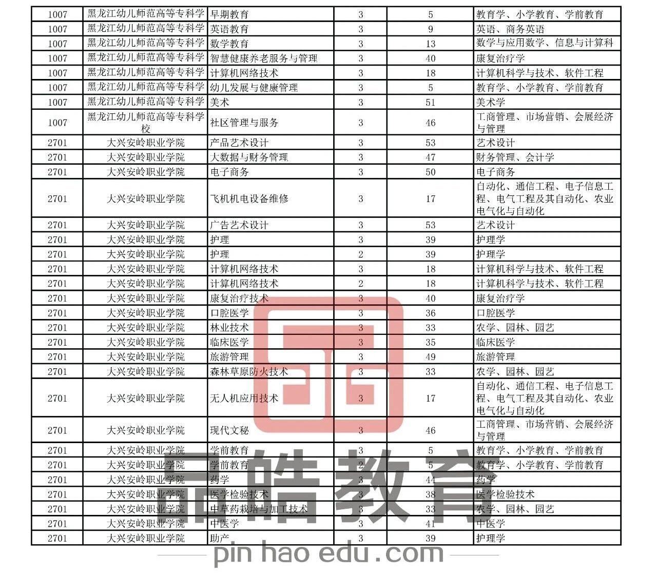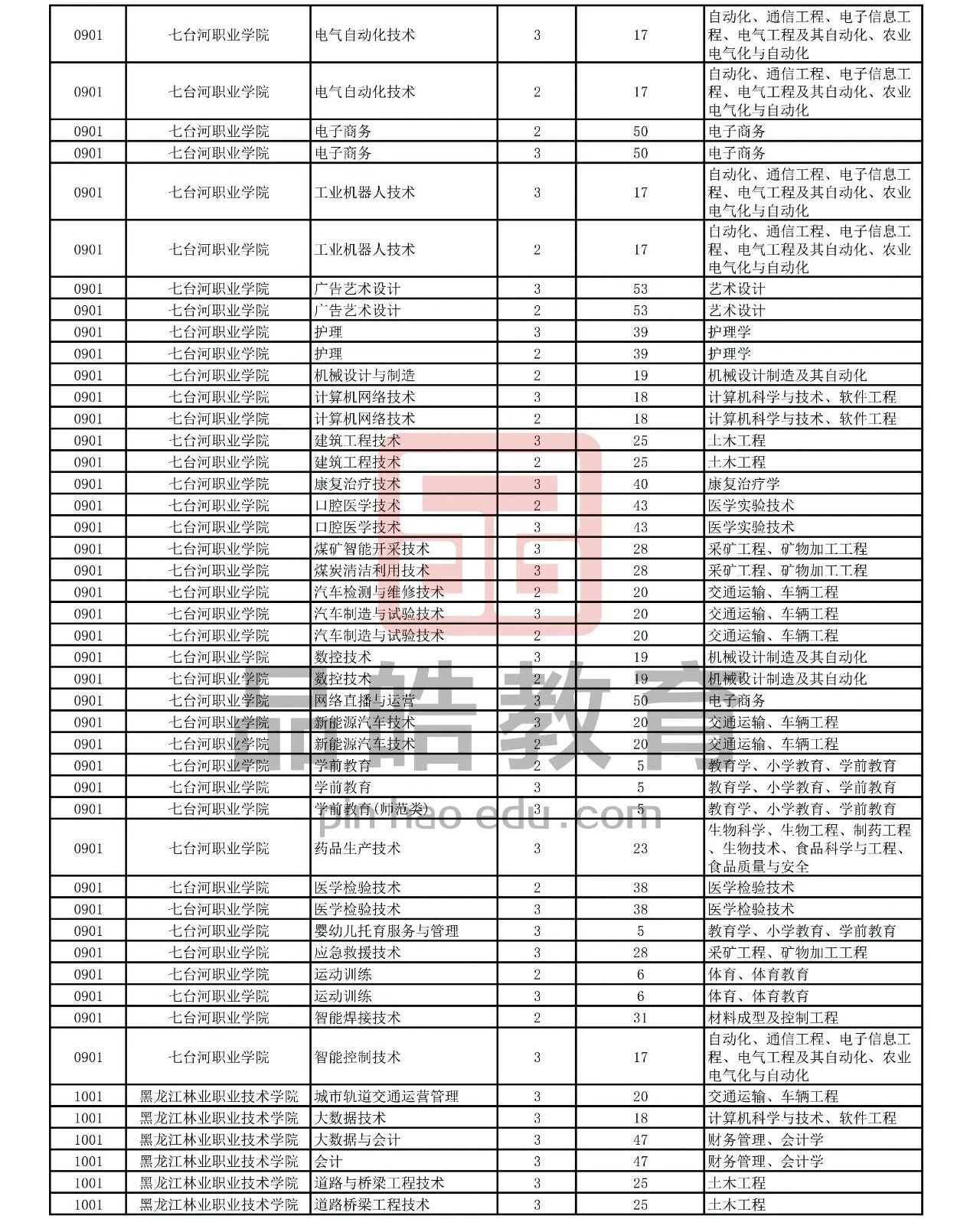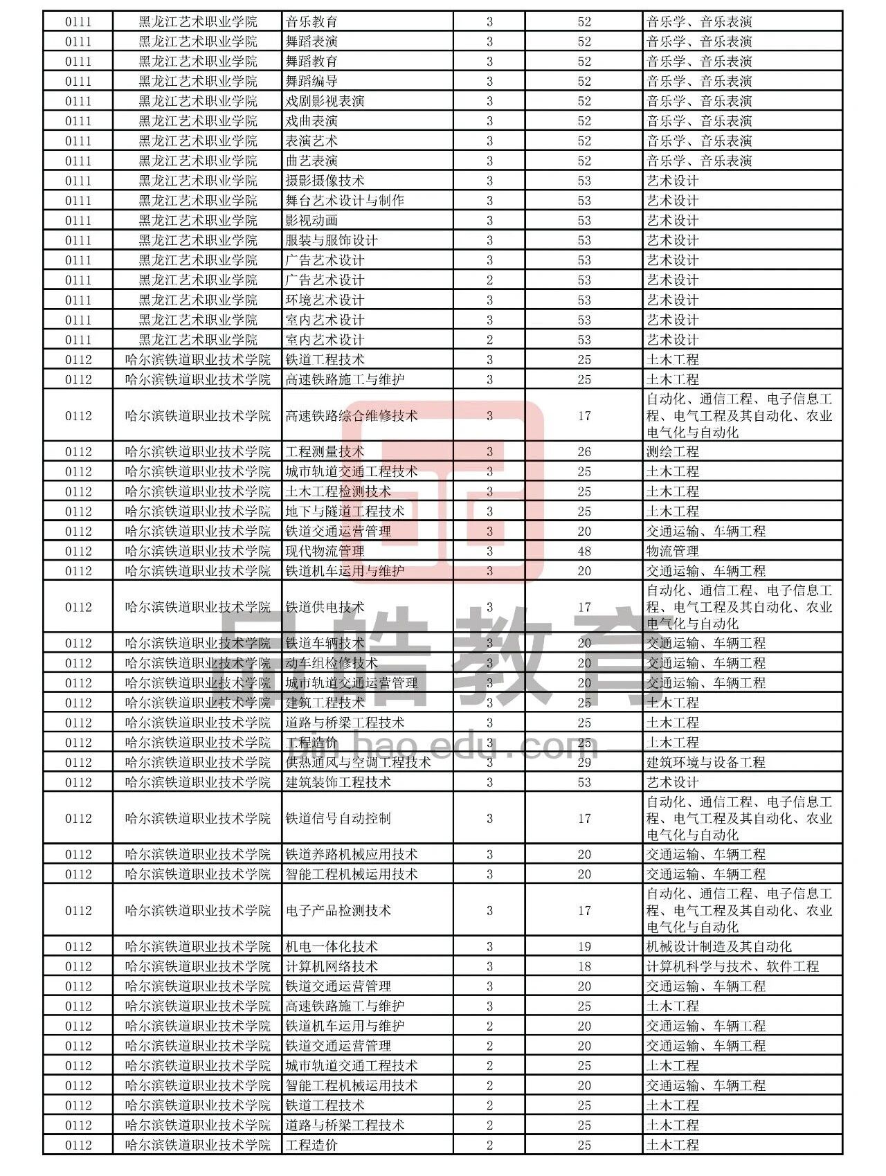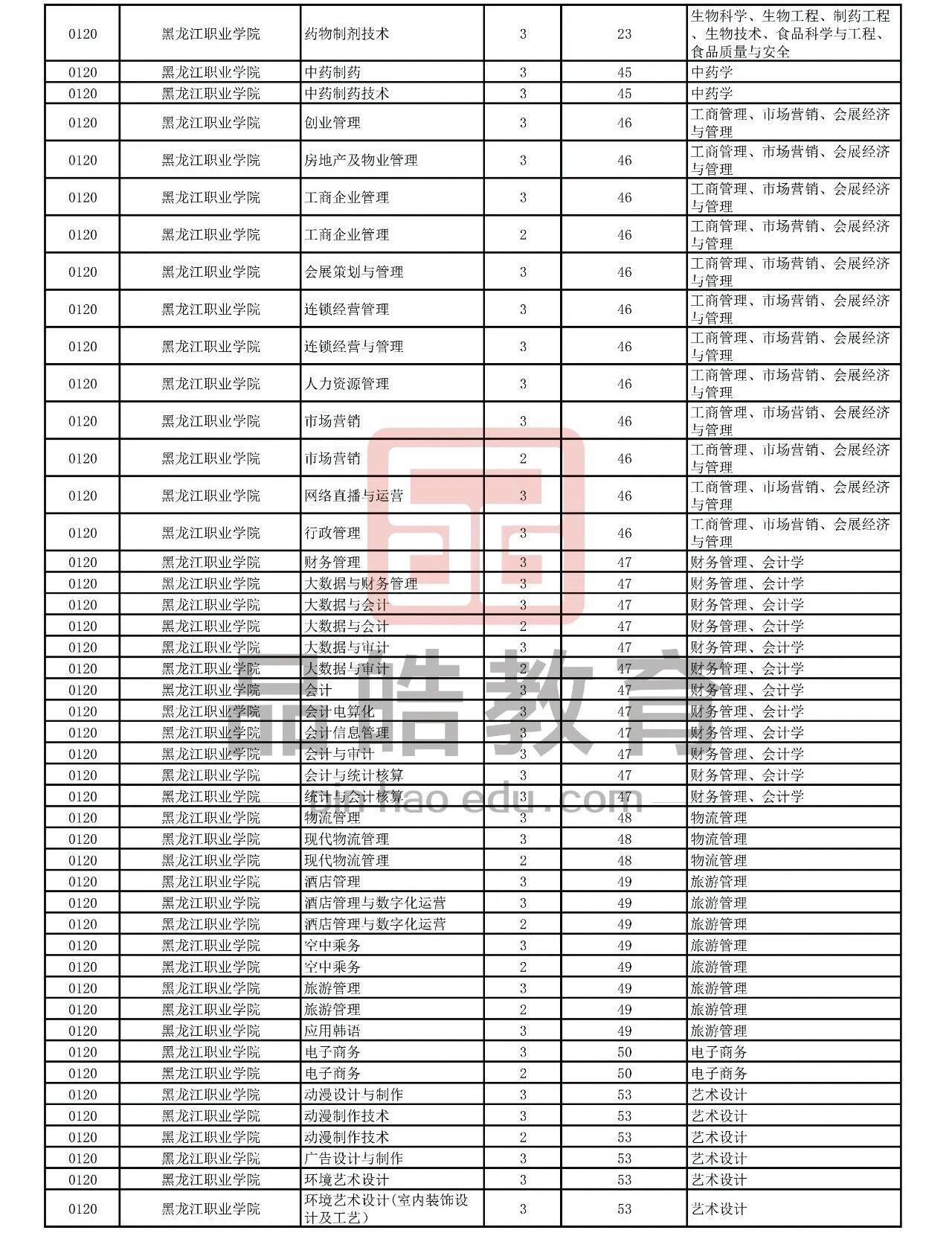2026年黑龙江省普通高校专升本考试专业对接表