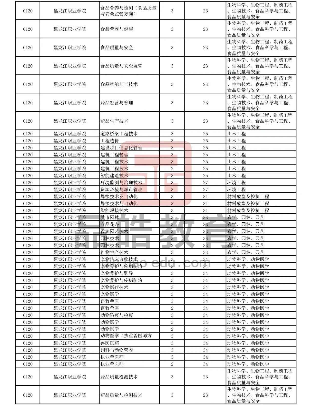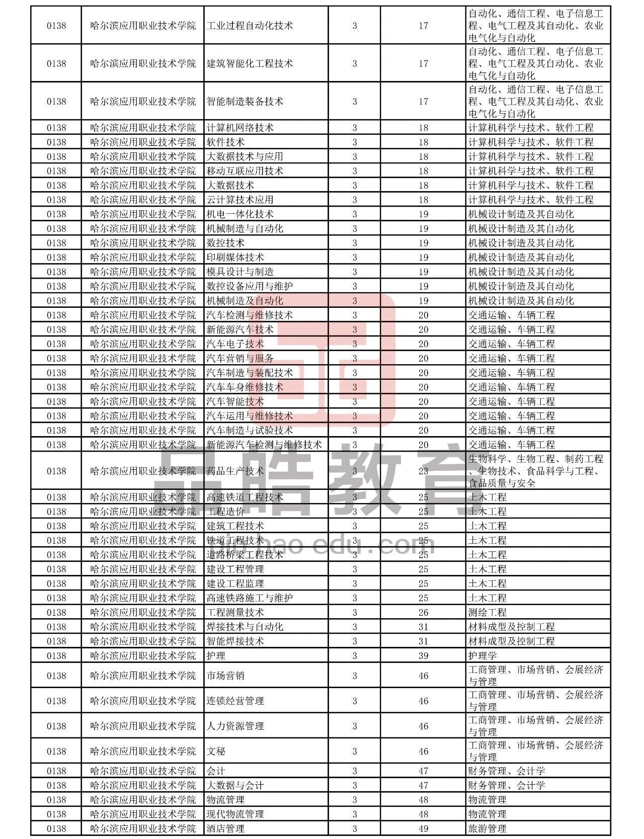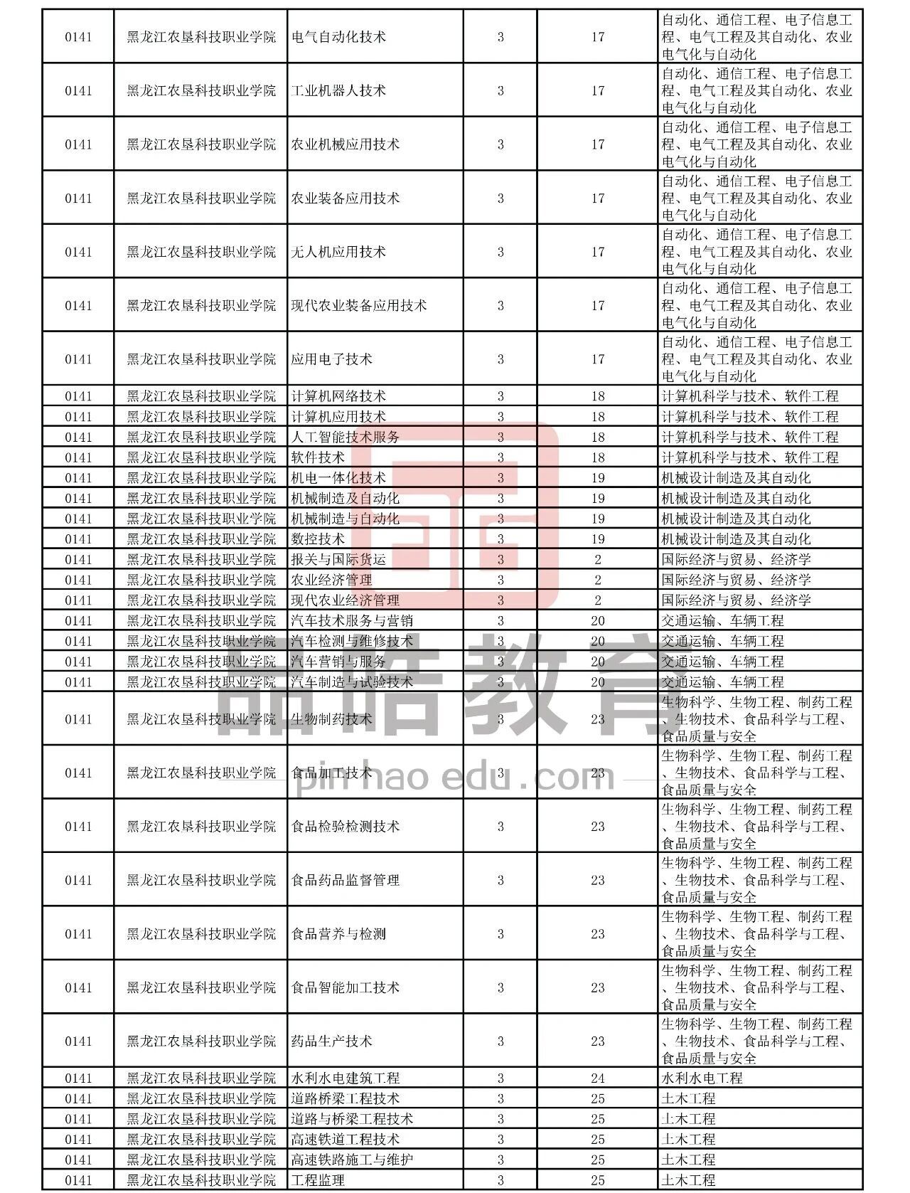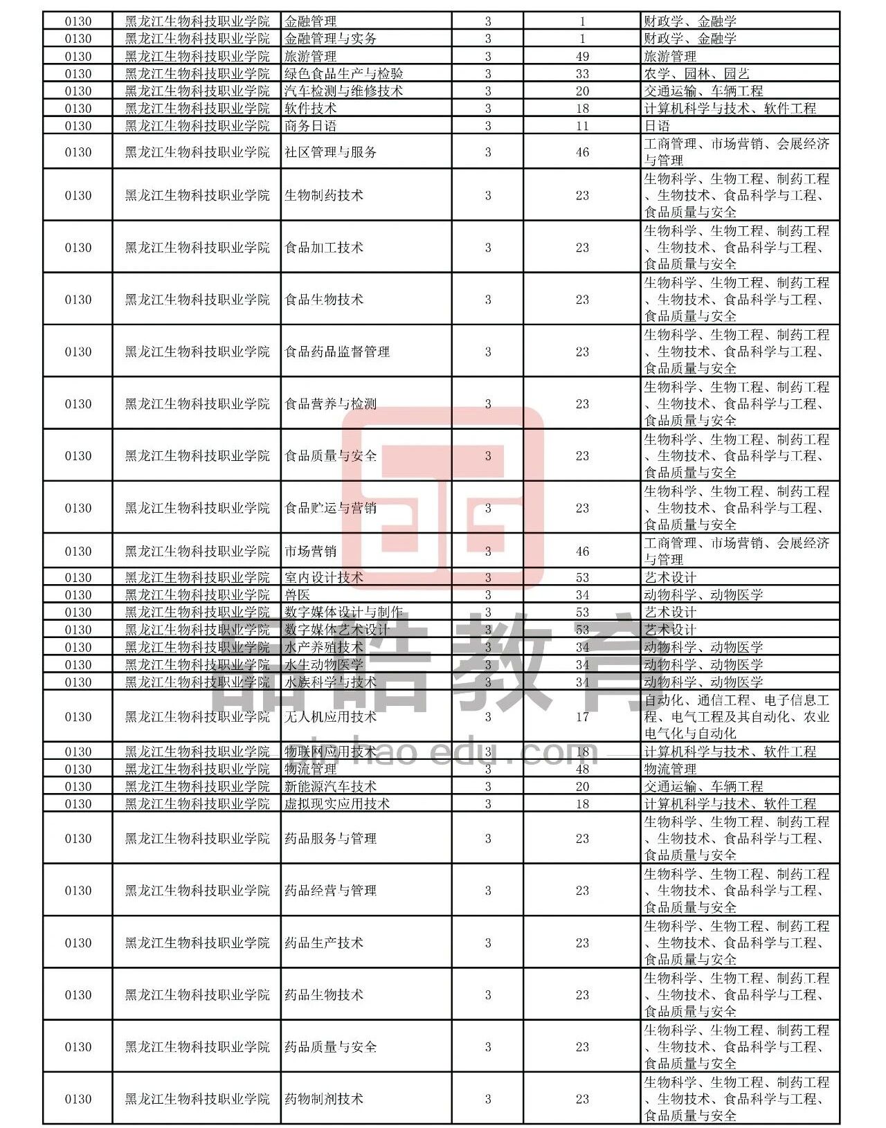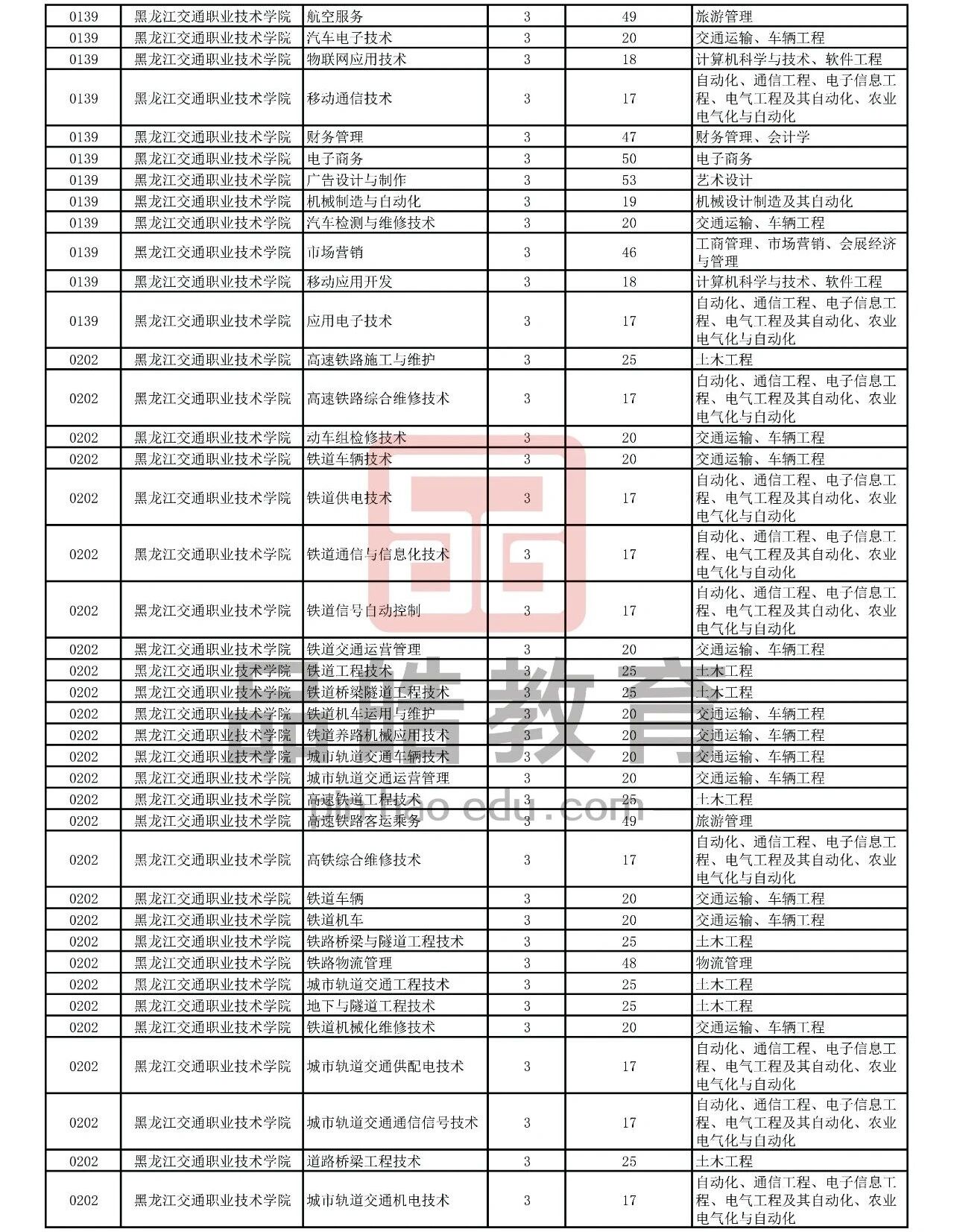 2026年黑龙江省普通高校专升本考试专业对接表
